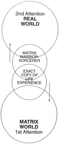 The means by which the matrix warrior escapes the matrix and becomes a matrix sorcerer is by tapping his or her will. The 2nd attention or real world is the world upheld by will, or creative imagination. Morpheus helps Neo to tap his sorcerer's will by telling him to free his mind and forcing him to attempt impossible acts, forcing him to believe. It is through will that the matrix sorcerer shapes his circumstances and turns them to his advantage. When his will is a fully functioning unit, he is ready to make the leap of imagination and to see the code, thereby becoming Lucid.